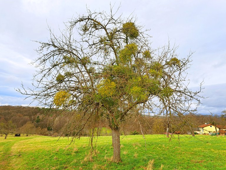 Die heimischen Streuobstwiesen gehören zu den wertvollsten Kulturlandschaften unserer Region. Sie bieten Lebensraum für unzählige Tier- und Pflanzenarten und prägen seit Generationen das Landschaftsbild. Doch ein stiller Angreifer setzt ihnen zunehmend zu: die Laubholzmistel. Was früher eine seltene Erscheinung war, hat sich in den vergangenen Jahren zu einer ernsten Bedrohung entwickelt. Die parasitische Pflanze entzieht den Obstbäumen dauerhaft Wasser und Nährstoffe – geschwächte Bäume tragen weniger Früchte, sterben früher ab und ganze Obstbestände geraten in Gefahr.